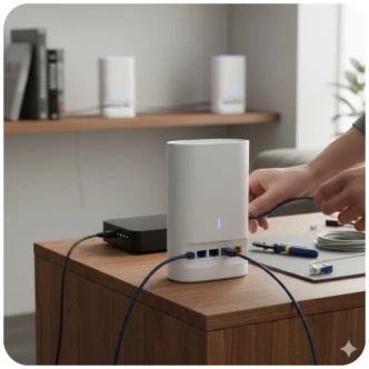 Kein langes Warten auf Pakete oder Rätselraten bei der Hardware-Auswahl. Wir liefern Ihnen die benötigten Geräte – vom modernen WLAN-Router über Mesh-Systeme für volle Reichweite im ganzen Haus bis hin zu professionellen Telefonanlagen – direkt zu Ihnen nach Hause oder in Ihr Geschäft.